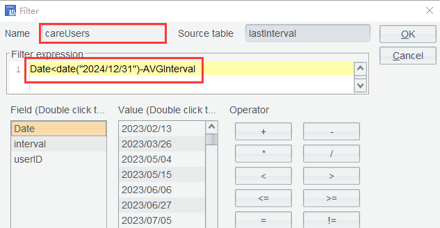 lastInterval 上,使用过滤表达式:Date<date("2024/12/31")-AVGInterval