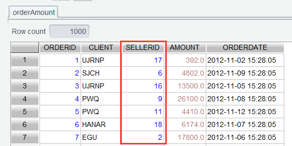 一些来自于数据库的数据表,为了存储效率,会将某些列值保存为相关表的代号。比如这张订单金额表 orderAmount ,销售员( SELLERID )是存储的 ID 号,不方便阅览: