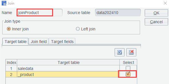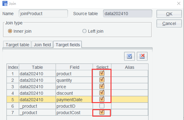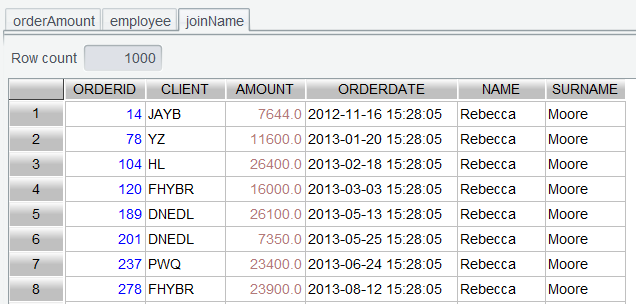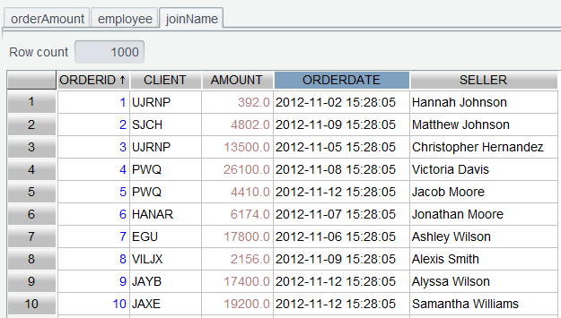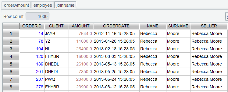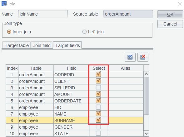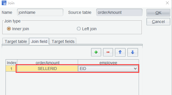 单击OK后,产生的 joinName 就已经将姓名关联到订单表了: