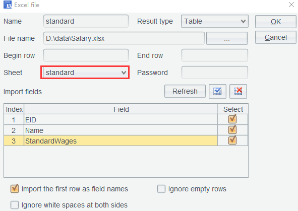 第二步: 在基本工资表 standard 上,单击数据关联按钮,如图选中两张需要关联的表: