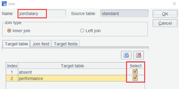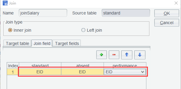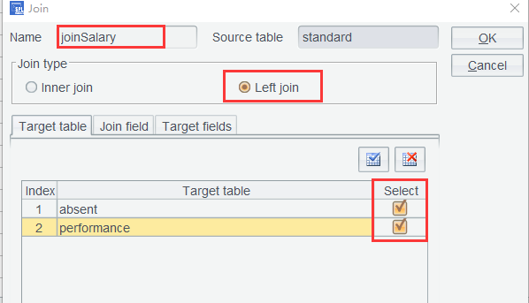 删掉当前 joinSalary ,在 standard 上重新设置关联,修改为左连接(Left join):
