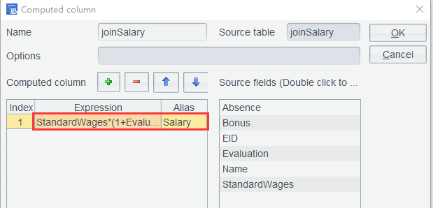 第三步:joinSalary 上,使用奖金以及考勤公式: