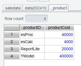 产品的成本价在产品表 ( product ) 里,产品的实际销售价在销售表( saledata )里,所以要计算毛利润,需要把两张表关联起来。