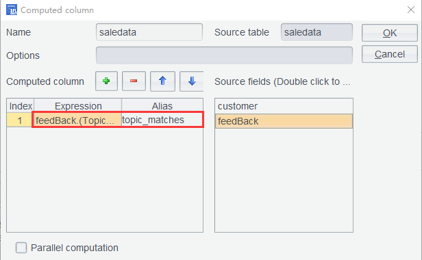 解决方法 1 saledata 表中追加计算列,将 feedBack 的内容通过表达式规范到新的数据列。但是该办法会导致数据冗余,耗费内存。